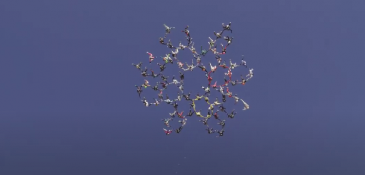 The Rider Post | 2 octobre 2015 202 parachutistes explosent le record du monde de saut en chute libre Air PARACHUTE Mardi dernier, plus de 200 skydivers ont tenté de battre le record du monde réunissant le plus de personnes dans le ciel. Et c'est à Perris sous le ciel californien pendant les Sequential Games (un évènement de formations aériennes de chute libre) que ce record a été battu haut la main. Le précédent record retenu par le Guinness Book était de 122 personnes même si on a vu récemment 164 parachutistes en l'air pour créer une forme géométrique à plus de 700 mètres dans les airs. Pour établir ce nouveau record, les parachutistes qui étaient venus de 30 pays différents, ont sauté à plus de 2 000 mètres d'altitude en même temps depuis neuf avions. "Il nous fallu 5 ans d'entrainement pour atteindre un tel niveau de précision" affirment les organisateurs (Dieter Kirsch, Milko Hodgkinson et Patrick Passe). Un grand bravo pour cette incroyable prestation chorégraphiée au millimètre avec un beau record mondial à la clé ! MM