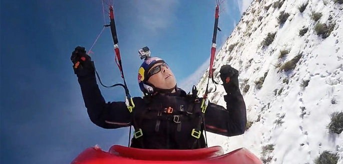 The Rider Post | 12 février 2015 Si on mixe du parachutisme, du kayak et du snow, ça donne quoi ? Insolite Snow Voici le "snow-speed-yaking", tout simplement la rencontre entre le speedriding et le kayak. Deux sports dont l'union ne paraissait pas évidente aux premiers abords mais qui se marient finalement assez bien. On doit cette innovation hybride à Miles Daisher qui a de la suite dans les idées car en mai dernier, il se jetait déjà d'un avion avec son kayak ! Le membre du Red Bull Air Force Team a trouvé un nouveau challenge à sa mesure avec ce sport qui réconcilie presque tous les éléments, l'air avec le parachutisme, l'eau avec le kayak et la neige. Miles annonce qu'il attend encore un accord du Comité Olympique International pour ajouter cette discipline sur le calendrier des prochains JO d’hiver. Daisher n'est pa considéré comme une personne tout à fait normale par ses collègues car il ne cese de chercher des nouveaux défis et de faire évoluer ces disciplines. On se demande d'ailleurs quelle sera sa prochaine invention et on peut se préparer au pire parce que le basejumper américain a affirmé que son prochain défi serait un sport qu'il commencerait sur la neige, s'enchainerait sur l’eau puis terminerait sur la neige ! Bizarre comme concept mais avec lui, il faut s'attendre à tout ! MM