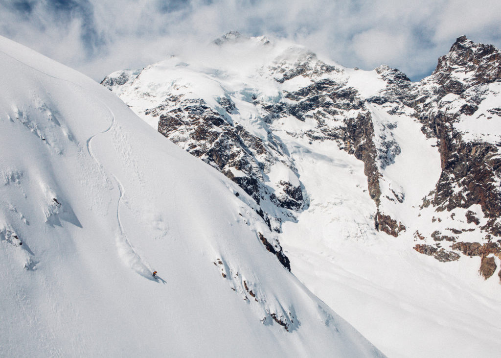 F19_BYO PRINT + DIGITAL (exludes V-ADS) / NOVEMBER 15, 2019 to NOVEMBER 15, 2020:  Nicholas Wolken, Patagonia Ambassador Diavolezza Glacier, Switzerland. Having the pleasure to work with Nicholas is sometimes that comes my way from time to time and that i much appreciate. But getting up to the Diavolezza Hut in the Swiss Alps, just when the resort has closed and with nobody around for a couple of days is something that is becoming rare in much of the locations we get to travel to. It was the month of may, warm and nice weather ahead of us and just a pure and free interpretation of such a unique ground as a mountain glacier can give such a cool result when giving the word to Nicholas, his board, and his turns.