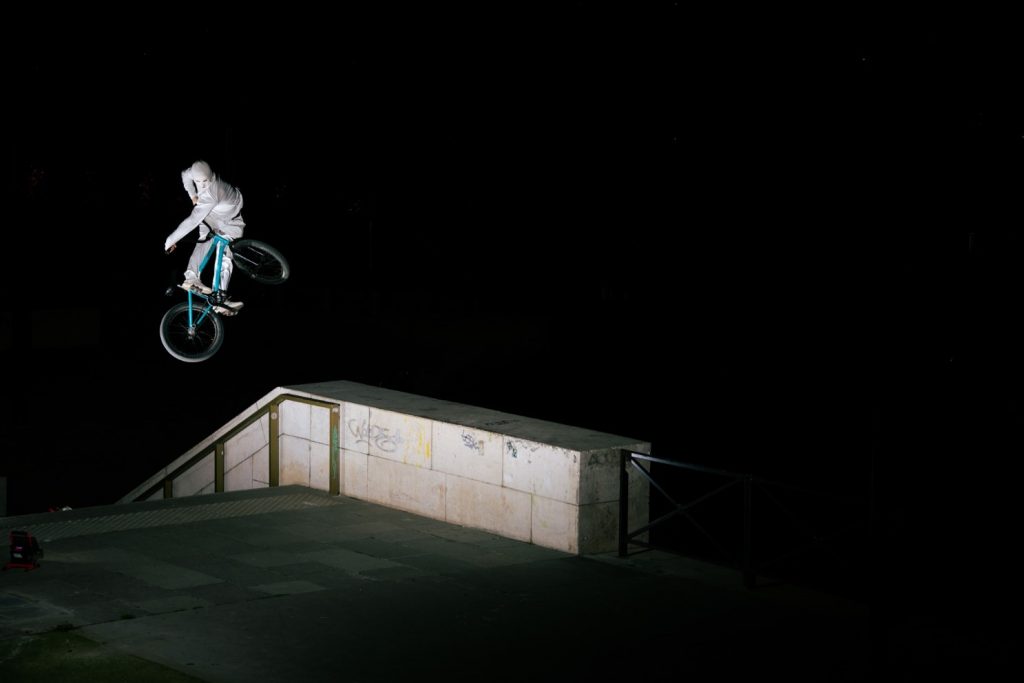 Vincent Girard | 20 décembre 2021 Vidéo : En BMX de nuit pendant les confinements BMX Entièrement vêtus de blanc, les riders BMX Ryoma Quenot et Robin Bourhis évoluent dans une ville morte, lors d’un tournage réalisé de nuit pendant les différents confinements et couvres feux. « Le concept de la vidéo est relativement simple : nous avons décidé de filmer une vidéo uniquement de nuit dans Paris et ses alentours, et pour être facilement visibles, nous nous sommes entièrement habillés en blanc » explique Robin Bourhis. « De plus, tous les plans de riding sont filmés pendant les différents confinements et couvres feux, d’où le nom « NECROPOLIS », pour ville des morts. Je précise que nous avions des attestations professionnelles pour le tournage. » © Antoine Petek « Pendant les premières semaines de tournage juste avant la mise en place du couvre-feu, nous avons construit quelques modules, afin de reproduire un semblant de Skatepark avec des palettes en bois dans un entrepôt abandonné à Bourron-Marlotte. Ensuite, nous avons été « rouler » dans un ancien bassin de rétention d’eau en plein milieu des champs aux alentours de Fontainebleau en Seine-et-Marne et enfin, nous nous sommes rendus à Sens dans l’Yonne pour rouler un « half pipe » mythique. Nous avons essayé de profiter de chaque endroit « unique » que nous avions dans un rayon relativement restreint. » Découvrez ci-dessous la vidéo Necropolis. Découvrez l’épisode de Pimp My Bike (émission produite par Puzzle Media) sur la transformation du BMX d’Aurélien.