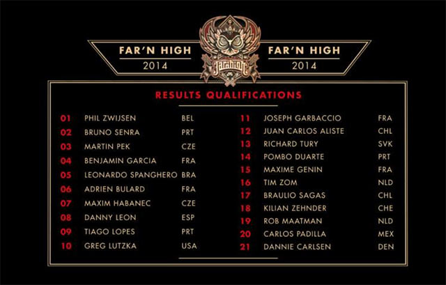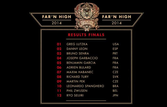 The Rider Post | 3 juin 2014 FAR’N’HIGH 2014 – LE DEBRIEF ! SKATE Urban Le Far'n'High s'est achevé dimanche à la Halle de skate du Val d'Orges sur la victoire imparable du seul américain présent : Greg Lutzka. Eh oui, en contest, contre lui, il n'y a pas grand chose à faire. 270 noseblunt, bonjour! Pourtant le belge Phil Zwijsen, le portugais Bruno Senra, le tchèque Martin Pek et le bordelais Benjamin Garcia avaient tenu les rènes des qualifs le samedi soir. La vidéo de ces qualifs permet de se rendre compte du niveau de tech qu'il l'y avait là-bas, ce week-end. Pourtant, nombreux sont ceux qui n'ont pas forcé, à commencer par Greg Lutzka, Danny Leon et même Adrien Bulard qui n'a pas tout laché. Les best tricks, par contre, régalez-vous, c'est dingue. Ce contest international est le seul de cette dimension qui perdure en France, c'est aussi le seul qui fasse partie du calendrier world cup. Il voit, chaque année, se mesurer des skateurs de nombreuses nationalités européennes. Un grand soin est apporté à la confection du park et l'aménagement est régulièrement mis à jour. Enormément de filles avaient également fait le déplacement et c'est la brésilienne Leticia Bufoni qui s'impose. photo: teddy morellec PIF.