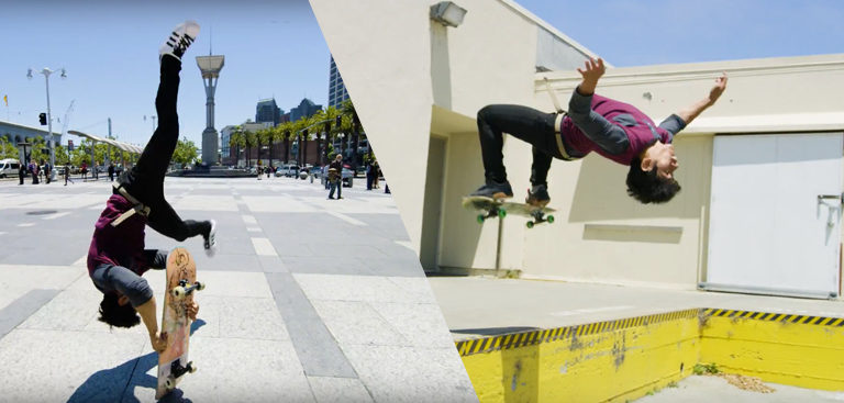 Jose Angeles en parkour/skate dans les rues de San Francisco