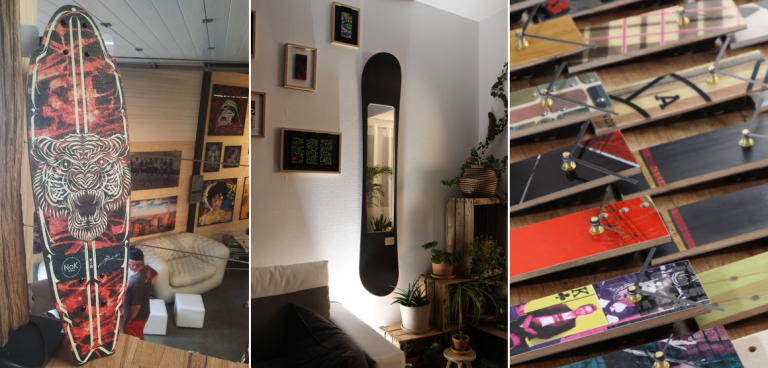 Vincent Girard | 1 juin 2022 À Grenoble, ils transforment des snowboards usagés SKATE SNOWBOARD Que ce soit sous forme de skate, d’horloges ou de miroirs, les créations de l’atelier Nok Boards basé à Grenoble, sont toutes tirées de snowboard usagés. Fondé par Adrien Reguis et Vincent Gelin (deux anciens ingénieurs qui travaillaient chez Rossignol), Nok Boards est un petit atelier basé dans la banlieue de Grenoble qui utilise les snowboard défectueux ou usagés comme matière première. Ces planches sont difficilement recyclables car composées de plusieurs matières qu’il n’est pas simple de séparer. Adrien et Vincent sont donc parvenus à leur donner une nouvelle vie en les transformant en de multiples objets dont des planches de skate, des miroirs, des horloges, des porte-clés… Le prix des skates varie entre 200 et 300 euros. Allez faire un tour sur leur site pour voir leurs productions que vous pouvez acquérir en ligne ou dans une vingtaine de magasins en France. Et n’hésitez pas à leur donner vos vieilles planches de snow usagées. Voir cette publication sur Instagram Une publication partagée par NoK Boards (@nokboards) Voir cette publication sur Instagram Une publication partagée par NoK Boards (@nokboards) Voir cette publication sur Instagram Une publication partagée par NoK Boards (@nokboards) Voir cette publication sur Instagram Une publication partagée par NoK Boards (@nokboards) Voir cette publication sur Instagram Une publication partagée par NoK Boards (@nokboards) Voir cette publication sur Instagram Une publication partagée par NoK Boards (@nokboards) Voir cette publication sur Instagram Une publication partagée par NoK Boards (@nokboards) Voir cette publication sur Instagram Une publication partagée par NoK Boards (@nokboards) Voir cette publication sur Instagram Une publication partagée par NoK Boards (@nokboards) Voir cette publication sur Instagram Une publication partagée par Snek (@snek_graffiti_and_calligraphy) Découvrez ce numéro de l’émission Riding Zone (produite par Puzzle Media) qui était allé à la rencontre du shaper Romain Chapron.
