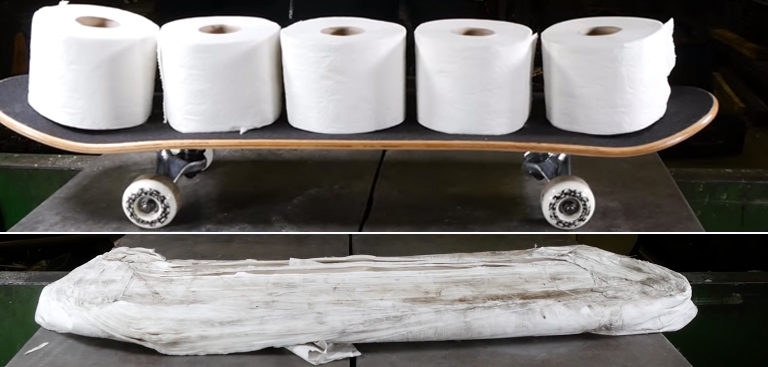 The Rider Post | 10 janvier 2017 L’idée du jour : une board de skate en papier toilette ! insolite SKATE Urban Voici un tutoriel complet qui explique comment fabriquer un skateboard avec des rouleaux de papier toilette, tout simplement ! Je ne sais pas comment cette idée est arrivée mais quelqu’un l’a eu et cette vidéo vous montre le résultat. Du PQ, une presse hydraulique et vous avez votre planche de skate ! Si vous avez une presse chez vous (ce qui est peu probable) et que vous ne savez pas quoi faire de votre papier toilette (ce qui est encore moins probable), vous savez ce qu’il vous reste à faire. Bon courage.