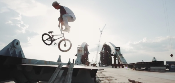 Ce pont est loin d'être terminé mais le streeter russe l'attaque déjà avec son BMX. Une session en solitaire aussi insolite que dangereuse avec des images peu communes. Alexander Rudenko s'en sort plutôt bien et nous balance des beaux petits tricks sur ces modules de fortune. Ça vaut le coup d'oeil.