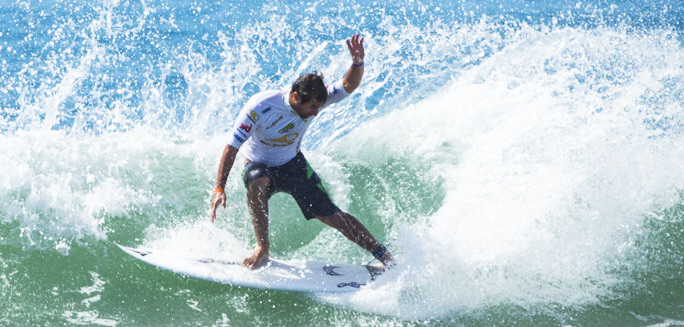 The Rider Post | 17 août 2013 SOORUZ LACANAU PRO 2013 – DAY 5 SURF Water Le Landais de 24 ans Joan Duru, vainqueur du Soöruz Lacanau Pro en 2009, se qualifie pour les phases finales de cette étape du championnat du Monde de surf professionnel qui se déroule jusqu’à demain à Lacanau. Lors de ce 4ème et 5ème tour, le Guadeloupéen de 23 ans Charles Martin tire également son épingle du jeu en compostant son ticket pour les dernières séries qui se jouent à 4 surfeurs avant les «man-onman» et qui débutent demain à partir de 9h. Des vagues plus puissantes sont attendues et nul doute que les Brésiliens vont tenter de conserver le titre Canaulais acquis depuis 3 ans. Après un «call» à 7h00 puis un autre à 8h00, le directeur de compétition, le chef juge et le représentant des surfeurs décident de lancer le 4ème tour du Soöruz Lacanau Pro, attendant le début de la marée montante afin d’optimiser le spot et l’évolution des surfeurs. Seuls 6 surfeurs Français sur les 14 présents dans ce tour se qualifient pour la suite de la compétition, à savoir le 5ème tour, synonyme de 1/16 de finale. Ce tour débute par la presta tion de Joan Duru qui grâce une vague où il exécute 3 énormes manœuvres récompensées par un 8,10 points. Il prend la tête pour ne plus la quitter jusqu’à la fin de la série, tout de même talonné par le Brésilien Marco Fernandez également qualifié. Imitant son ami Landais, l’Antillais Charles Martin obtient sa qualification en fin de série avec une vague notée 7,27 points qui, additionnée au 7,00 points acquis auparavant, le hisse à la seconde place synonyme de qualification, derrière le fougueux Brésilien Jesse Mendes. La suite des événements voit la défaite des autres Français encore en lice dont l’élimination du Landais classé 23ème mon dial, Marc Lacomare (23 ans). Le meilleur score est attribué à l’Américain de 21 ans Balaram Stack, auteur d’un 9,00 points puis d’un 9,57 points récompensant une succession d’Air Reverse aisément exécutés, et donc avec un score proche de la perfection de 18,57 points sur 20. Demain, un call est fait à 9h00 pour lancer les quarts de finale joués à 4 surfeurs où seuls les deux premiers sont qualifiés pour les quarts de finale suivants se jouant cette fois-ci à 2 surfeurs. Cette transition permet de poursuivre la compétition avec des séries en «man-on-man» jusqu’à la f inale de cette épreuve «Men’s star» du championnat du monde de surf professionnel. Livestreaming sur sooruzlacanaupro.com ou juste en dessous : Photos : http://www.aspeurope.com