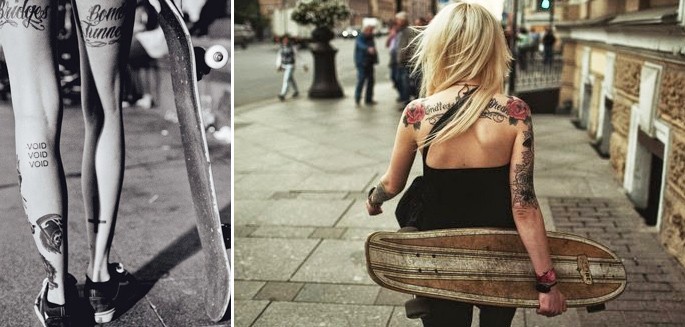 En partenariat avec le blog Chazster, cette semaine nous avons fait une nouvelle sélection de filles tatouées qui font du skate (la première partie est ici), qui tiennent juste une planche pour certaines ou qui ont tout simplement le look skateuse…