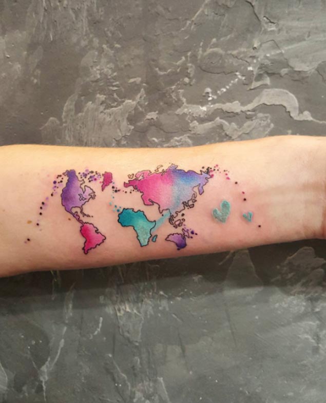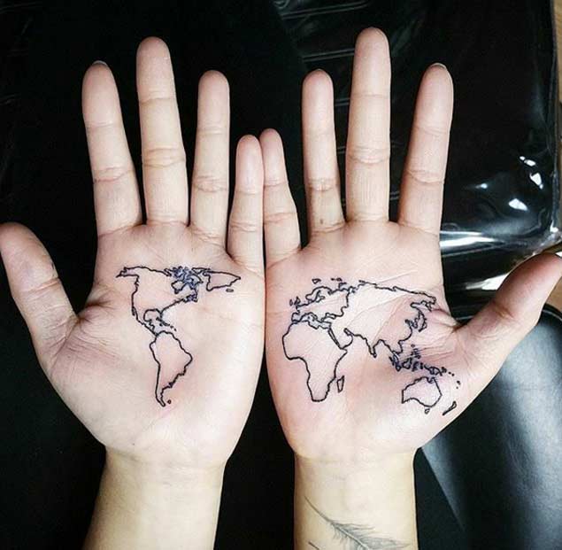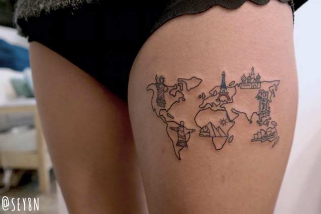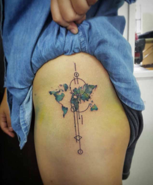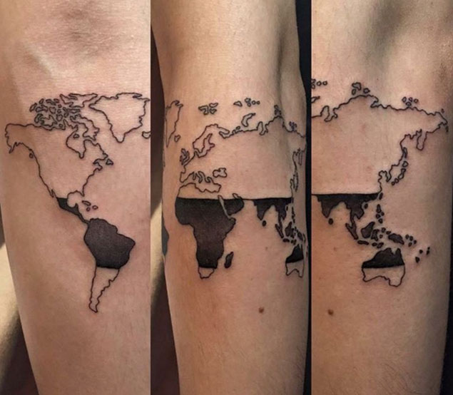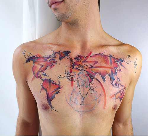 The Rider Post | 9 décembre 2016 Top 50 des tatouages « carte du monde » Lifestyle Tatouage S’il y a un point commun qui lie tous les pratiquants de sport de glisse, c’est vraisemblablement la passion pour les voyages, et parfois le tatouage. L’essence même du rider c’est le trip, la destination lointaine et la découverte. Le monde n’a aucun secret pour les athlètes des sports extrêmes, et par conséquent la mappemonde non plus. Que ce soit pour un contest, un show ou la recherche d’un spot, le rider passe son temps dans les avions et les trains à parcourir le globe. Une autre chose qui lie souvent les riders, c’est le tattoo. Tous ne sont pas tatoués mais si on devait faire des raccourcis et des généralités, il faut bien admettre que beaucoup ont de l’encre dans l’épiderme. Alors l’idée du jour est de vous proposer une compilation de tatouages sur le thème de la carte du monde, qui symbolise donc le voyage et l’évasion. Des dessins qui pourraient également vous servir de modèle si vous êtes en manque d’inspiration et pour vous entrainer à réviser votre géographie au passage. Source : Google