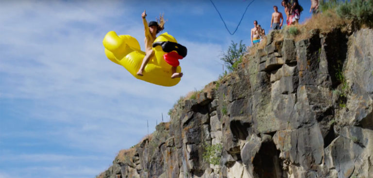 Un remake du saut de Tarzan mais en plus délirant… Cette semaine, le crew déjanté de Devin Graham revient avec un concept moins insolite mais toujours aussi fun. Du rope jump insolite. Une série de sauts loufoques dans cette sublime rivière Snake située dans les chutes de l’Idaho …