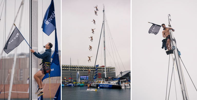 Le spécialiste du cliff jumping s’est élancé de 27 mètres de hauteur dans les eaux du bassin Paul Vatine au Havre depuis le haut du mât de l’IMOCA Fortinet – Best Western du marin Romain Attanasio. Ce dimanche 19 octobre, Jérémy Nicollin s’est rendu sur le ponton d’honneur de la Transat Café …