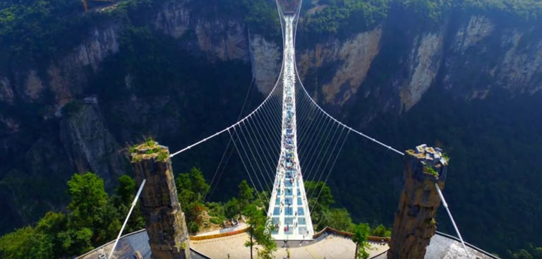 The Rider Post | 27 avril 2018 Le plus long pont de verre du monde suspendu à 218m au dessus du vide Insolite Les Chinois ont créé le plus grand pont transparent du monde. Les sensations fortes sont garanties sur ce parcours de 488 mètres. La folie des grandeurs continue d’envahir la Chine qui ouvre le plus grand pont transparent au monde. Suspendu à 218 mètres du sol, cette passerelle a nécessité l’assemblage de 1 077 panneaux en verre, épais de quatre centimètres environ. Le pont Hongyagu relie deux sommets montagnards du Nord-Est chinois, dans la région de Pékin. Ils sont séparés par 488 mètres de vide. Pour des raisons de sécurité, seulement 500 à 600 visiteurs sont autorisés à être en même temps sur la construction. Á cause de la vue vertigineuse, une équipe médicale se trouve constamment à proximité pour aider les nombreux malaises qui se produisent. En guise de bonus, pour ceux qui auraient traversé le pont sans difficultés : un tremblement est ajouté sur une petite plateforme au bout du pont. Il aura fallu trois longues années pour terminer cette construction minutieuse. “Le pont de verre en suspension Hongyagu signe le début de l’ère 2.0 pour les ponts à fond de verre en Chine.” assure Yang Minhua, le responsable du projet. Vous pourrez trouver plus de renseignements sur l’attraction en cliquant ici.