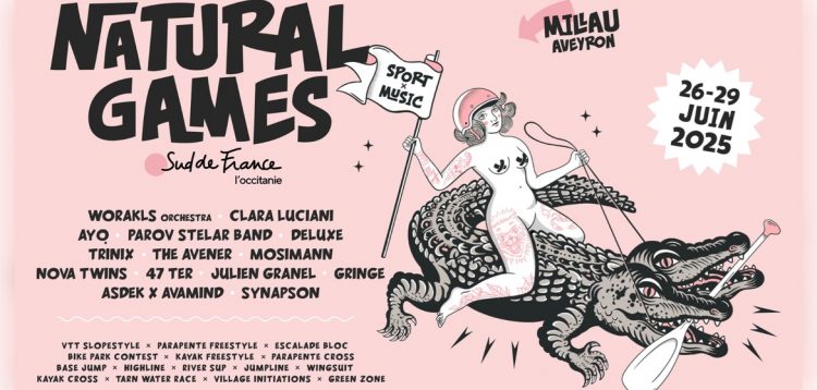 Rendez-vous incontournable des sports outdoor et de la musique, les Natural Games reviennent à Millau, au cœur de la Région Occitanie, pour un événement mixant compétitions internationales, shows extrêmes et ateliers d’initiation pour le grand public. Et comme chaque année, le programme est ultra chargé : Escalade, kayak, VTT freestyle, parapente freestyle, VTT descente, base jump, stand up paddle, jumpline, highline… Il y en aura pour tout le monde sur cette édition 2024 qui proposera évidemment également de la musique avec 20 artistes reconnus ou émergents et des featuring sport x music inédits.