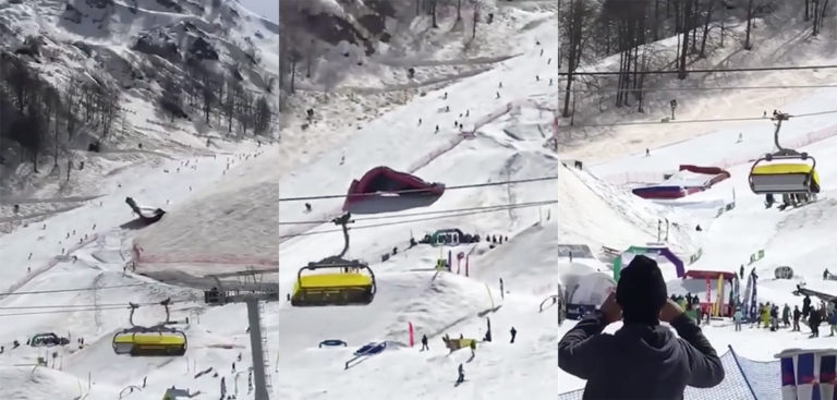 Anouchka Noisillier | 9 avril 2018 Un airbag géant manque de blesser des skieurs en Russie Insolite Une scène insolite s’est déroulée mercredi dernier sur le snowpark de Rosa Khutor, la station qui avait accueilli les jeux olympiques de ski alpin en 2014. En Russie, un immense airbag est devenu incontrôlable après s’être dégonflé. Il s’est échappé de sa zone délimitée pour glisser sur plusieurs dizaines de mètres. Bien que le coussin géant ne soit pas passé loin de certains skieurs se trouvant sur son chemin, aucun blessé n’est à déplorer. Décidemment, après le télécabine qui se décrochait à Pra Loup dans les Alpes du Sud il y a deux semaines et le télésiège qui devenait fou en Géorgie le mois dernier, cet hiver n’a pas fini de nous faire des surprises.
