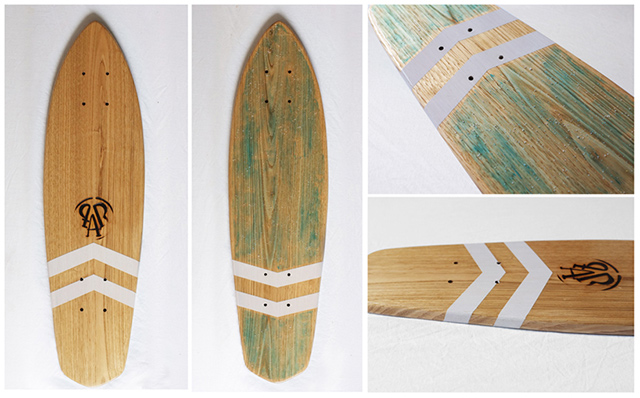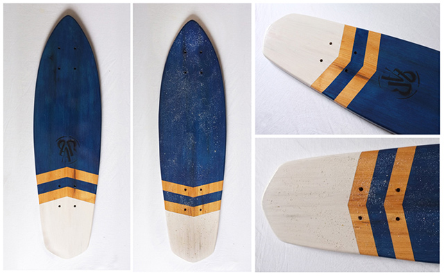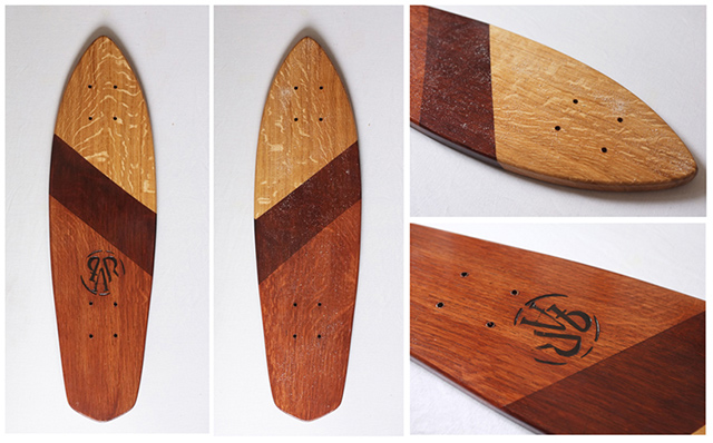 The Rider Post | 11 septembre 2013 DU SKATE MADE IN CANTAL ! SKATE Urban Les modes de transport évoluant de plus en plus le skateboard et autre "cruiser" sont devenus une alternative aux déplacements urbains. Inspiré des premiers skates et de l'esprit surf californien la "Planche à roues" vous propose sa nouvelle collection de skate "handmade with love". Cette série de planches plus petites et compactes appelées Colibri sont idéales pour se faufiler dans la jungle urbaine. Toujours en laissant une grande part au bois les planches réalisées dans différentes essences, tel que le frêne, le chêne ou encore le pin des landes, sont shappées dans du bois massif puis customisées. Toutes les étapes de la découpe jusqu'à la fabrication du grip sont réalisées à la main en France (Cantal). C'est à travers cet édit à l'esprit bon enfant que la Planches à Roues nous fait découvrir son univers en partageant avec vous leur passion. "Cette société, si on peut vraiment l'appeler comme ça, est plus une sorte de collectif de potes, qui a vu le jour durant l'été 2012 au Fanc, un petit village du fin fond du Cantal. Constituée d'un graphiste, Roméo, un commercial, Benoit, et un designer, Léo, La Planche à Roues est le fruit d'une volonté d'unir notre passion pour les sports de glisse avec nos différentes vocations dans le but de créer notre propre marque. En revenant aux origines du skate, une simple planche avec des roues, et en s'inspirant de l'esprit surf californien, nous souhaitons créer un objet destiné à tout les amoureux de la glisse, leur permettant de se promener à travers villes et routes de campagne… tout en retrouvant les sensations du skate, snowboard, surf et autres sports du même genre. Nous n'avons pas de team-riders car La Planche à Roues n'est pas réellement un sport extrême en lui même, juste une façon de se déplacer au quotidien en retrouvant justement l'amusement et les sensations ressenties lorsqu'on pratique ce genre de sports. Concernant les planches, nous avons décidé de laisser une grande part au bois en le mettant en valeur avec différentes lasures et vernis afin d'avoir un produit noble et séduisant entièrement travaillé à la main. Toutes les planches sont en effet découpées dans du bois massif puis percées, poncées, marquées… par nous même dans notre atelier. C'est une sorte d'échappatoire qui nous permet de se retrouver dans une bonne ambiance à fabriquer des objets qu'on a le plaisir de pouvoir cruiser ensuite. Nos projets, pour l'instant sont de continuer à faire ces planches tout en essayant de développer une gamme de "textile" avec notamment des habits teints ou cousus à la main (comme nous l'avons déjà fait en très petites quantités), afin de garder cet esprit "handmade with love" auquel nous tenons beaucoup. Puis peut-être plus tard si possible essayer de toucher à d'autres sports, pourquoi pas une planche à neige !" Toutes les infos sur : http://laplanchearoues.com