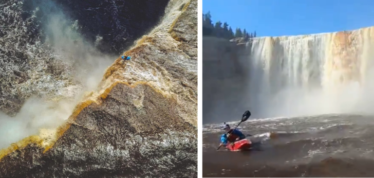 Vincent Girard | 31 octobre 2018 L’incroyable saut d’un kayakiste sur une chute d’eau de 33 mètres Kayak extrême Spectaculaires images du kayakiste Adrian Mattern filmé depuis un drone. Ce dernier se lance dans les chutes Alexandra d’une hauteur de 33 mètres. Auteur de plusieurs premières mondiales en kayak de rivière, Adrian Mattern n’est pas le premier venu dans la discipline et il vaut mieux si l’on compte affronter les chutes Alexandra au Canada. Ces dernières sont hautes de 33 mètres et sont situées dans le Territoires du Nord-Ouest sur la rivière Hay. L’Allemand s’est lancée sur ces chutes en août dernier et avait alors dévoilé la caméra embarquée de son énorme jump (voir plus bas). Cette semaine, c’est une vidéo du même saut filmée depuis un drone qui a été révélée (voir ci-dessous ou à cette adresse en HD). https://www.youtube.com/watch?v=5oSVtHbjapQ Adrian Mattern est le troisième kayakiste seulement à parvenir à franchir les chutes Alexandra. « J’avais découvert ces chutes d’eau en 2014 expliquait l’Allemand après son exploit. J’ai tout de suite su que j’allais un jour revenir pour les sauter. Mais je voulais encore m’aguerrir avant de les tenter. Finalement, ça s’est passé comme dans un rêve. Je suis remonté facilement à la surface. C’était un grand objectif pour moi et je l’ai atteint. » Regardez ci-dessous son passage en caméra embarquée.