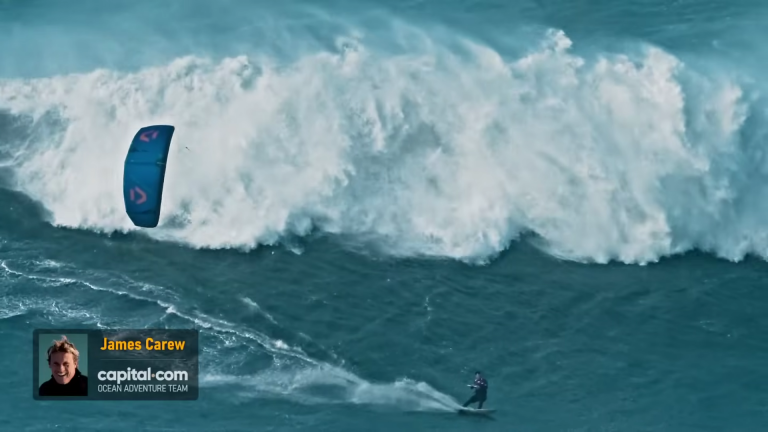Vincent Girard | 29 juin 2025 James Carew signe l’une des plus grosses sessions de l’histoire en kite à Nazaré KITESURF Le kitesurfeur australien a peut-être pris l’une des plus grosses vagues de sa carrière lors d’une session XXL à Nazaré cet hiver. Quadruple champion du monde de kite, James Carew a le pédigré pour aller affronter un spot tel que Nazaré, alors que rares sont les kitesurfeurs à oser se mesurer à la vague portugaise sur laquelle on voit plus couramment des surfeurs. Cet hiver, l’Australien a eu un jour parfait pour signer l’une des plus belles sessions en kite de l’histoire de Nazaré. Au point que sa plus grosse vague rentre dans le livre des records ? L’avenir le dira, le temps que la hauteur de ces monstres soit officiellement mesurée. En attendant, on se régale avec la vidéo de cette session dévoilée il y a quelques jours. Regardez le reportage de l’émission Riding Zone (produite par Puzzle Media) sur le record du monde du vol le plus haut en kite par Timothy Pipart.