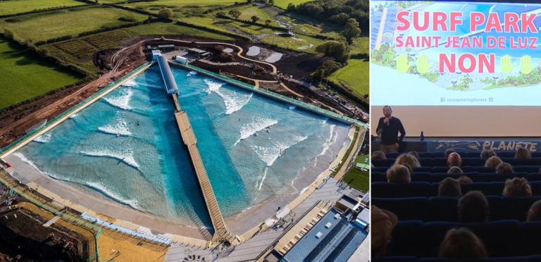Vincent Girard | 30 septembre 2020 La piscine à vagues de Saint-Jean-de-Luz attise les critiques SURF Le projet de piscine à vagues envisagé par la Mairie de Saint-Jean-de-Luz et situé à moins de deux kilomètres de l’océan suscite de plus en plus de critiques de la part de la population locale et des surfeurs. S’il existe de nombreuses villes françaises dans lesquelles trouver certains des meilleurs spots de surf d’Europe, les projets de piscine à vagues près des côtes sont toujours envisagés par des élus. C’est le cas à Saint-Jean-de-Luz où la Mairie espère construire un Surf Park de 7 hectares avec le soutien du groupe Boardrider (qui possède notamment les marques Quiksilver, Billabong, Roxy ou Element). Boardrider est en effet propriétaire de la moitié du terrain sur lequel verrait le jour cette structure (l’autre moitié étant détenue par la municipalité). Problème, cette piscine serait construite à moins de deux kilomètres de la plage dans un secteur qui ne manque pas de spots pour pratiquer le surf. Les opposants à cette piscine à vagues se sont réunis ce lundi 28 septembre après qu’une pétition ait réuni plus de 45 000 signataires. Les caméras de France 3 Nouvelle-Aquitaine étaient sur place, de même que nos confrères de Surf Session qui consacre un article détaillé au sujet. Les opposants ciblent notamment l’aspect écologique du projet (l’eau nécessaire au fonctionnement de la piscine à vagues équivaut par exemple à 15 piscines olympiques soit la consommation annuelle de 540 familles). Le coût (40 millions d’euros) fait également l’objet de critiques alors que la proximité avec l’océan est évidemment ciblée par les opposants. De son côté, la Mairie met en avant la possibilité de créer de nouveaux emplois avec cette piscine à vagues sur un terrain qui a de toute façon une vocation économique depuis 15 ans. Produite par la société Puzzle Media, l’émission Riding Zone avait déjà enquêté sur le phénomène des piscines à vagues dans un reportage à voir ci-dessous :