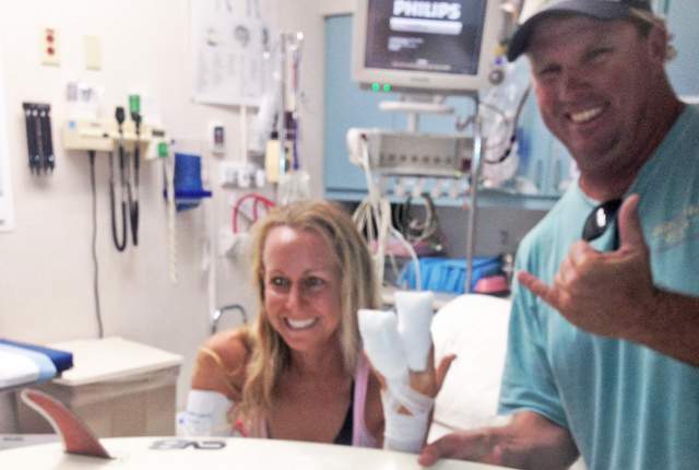 The Rider Post | 5 novembre 2014 Un surfeur sauve son amie d’une attaque de requin tigre ! SURF Water Un drame a faillit se produire à Hawaii la semaine dernière lorsque la surfeuse locale McKenzie Clark s’est faite attaquer par un requin tigre de 3,5 m de long. Heureusement, elle était en compagnie de son ami Brian Wargo, qui a volé à son secours après avoir entendu ses cris. Le requin a quand même eu le temps de mordre sa planche ainsi que sa main gauche. Sans perdre de temps, le courageux Brian Wargo est monté sur le dos du requin et lui a donné des coups de poing jusqu’a ce qu’il s’en aille. Il a ensuite ramené McKenzie Clark jusqu’à la rive pour qu’elle soit transportée à l’hôpital le plus proche. Elle est finalement est saine et sauve après avoir reçu 20 points de suture et une greffe de peau. Cet incident marque la quatrième attaque de requin tigre dans les deux dernières semaines ! Arthur L.