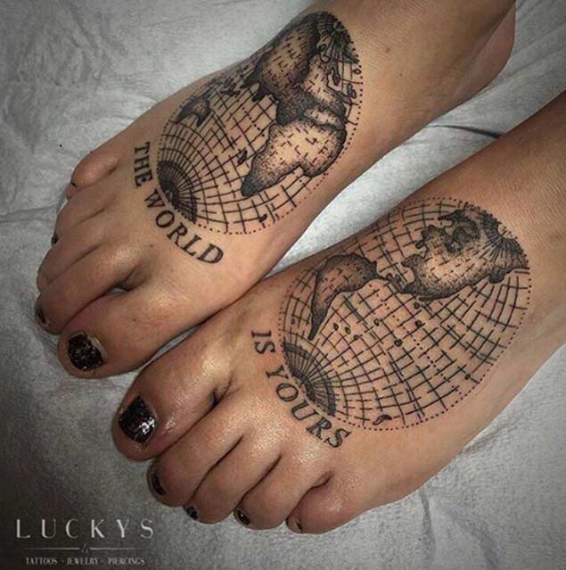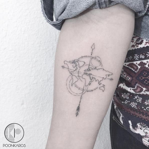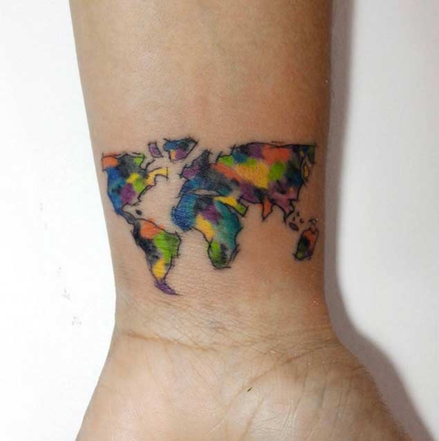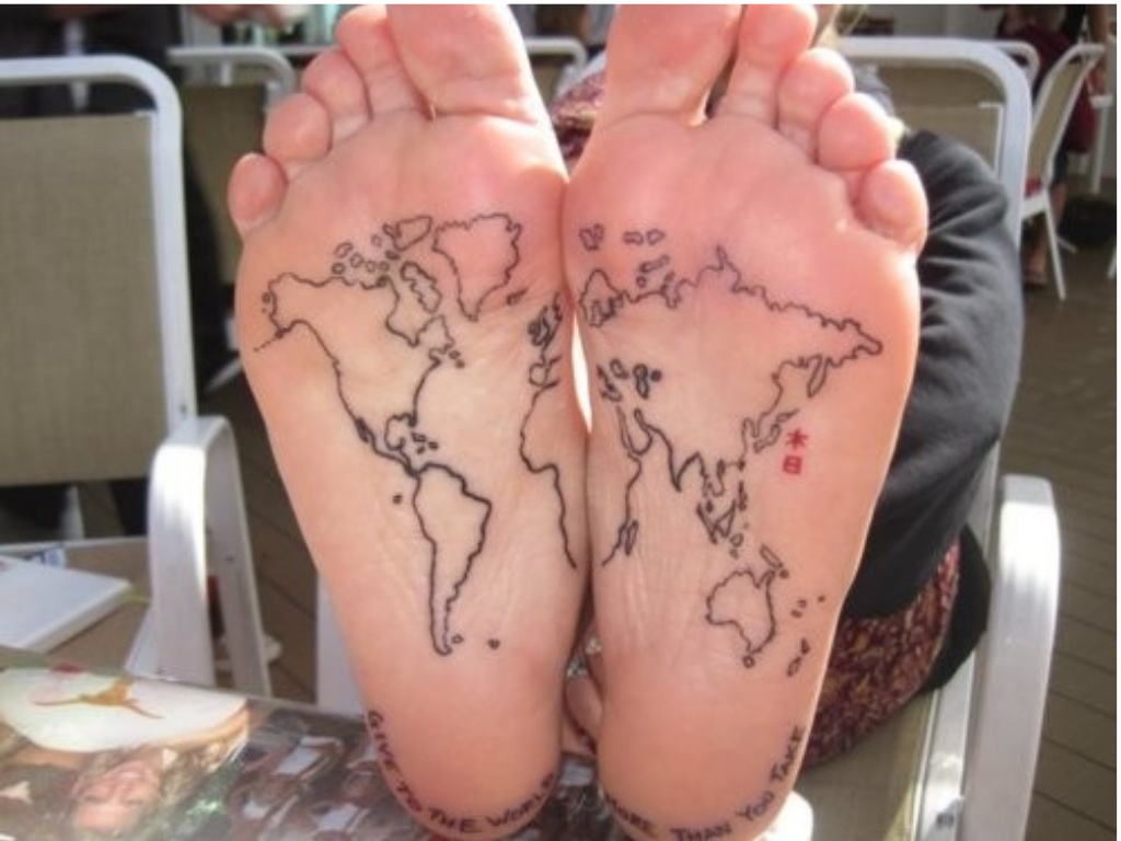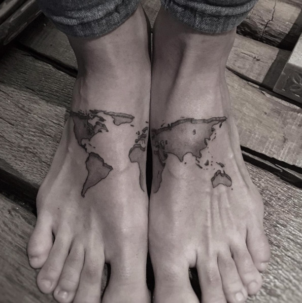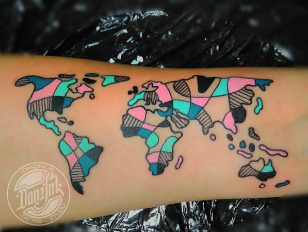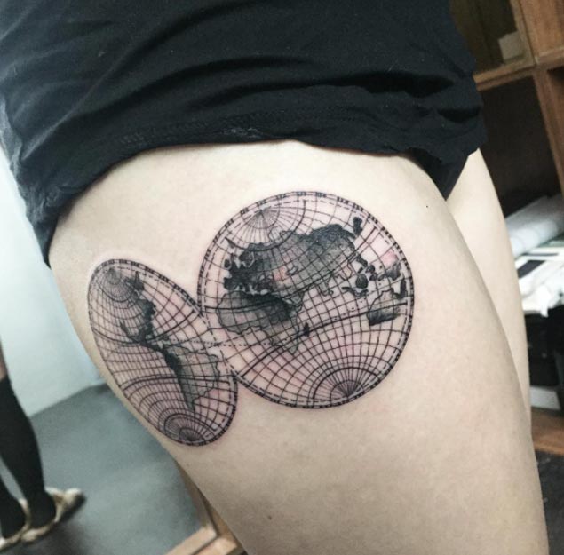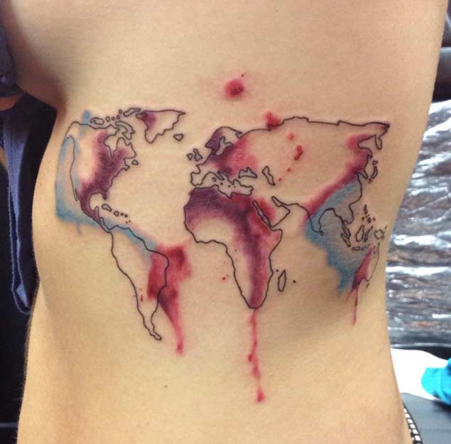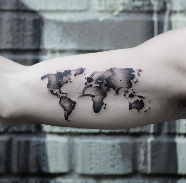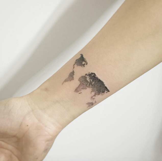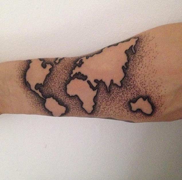 Alors l’idée du jour est de vous proposer une compilation de tatouages sur le thème de la carte du monde, qui symbolise donc le voyage et l’évasion. Des dessins qui pourraient également vous servir de modèle si vous êtes en manque d’inspiration et pour vous entrainer à réviser votre géographie au passage.